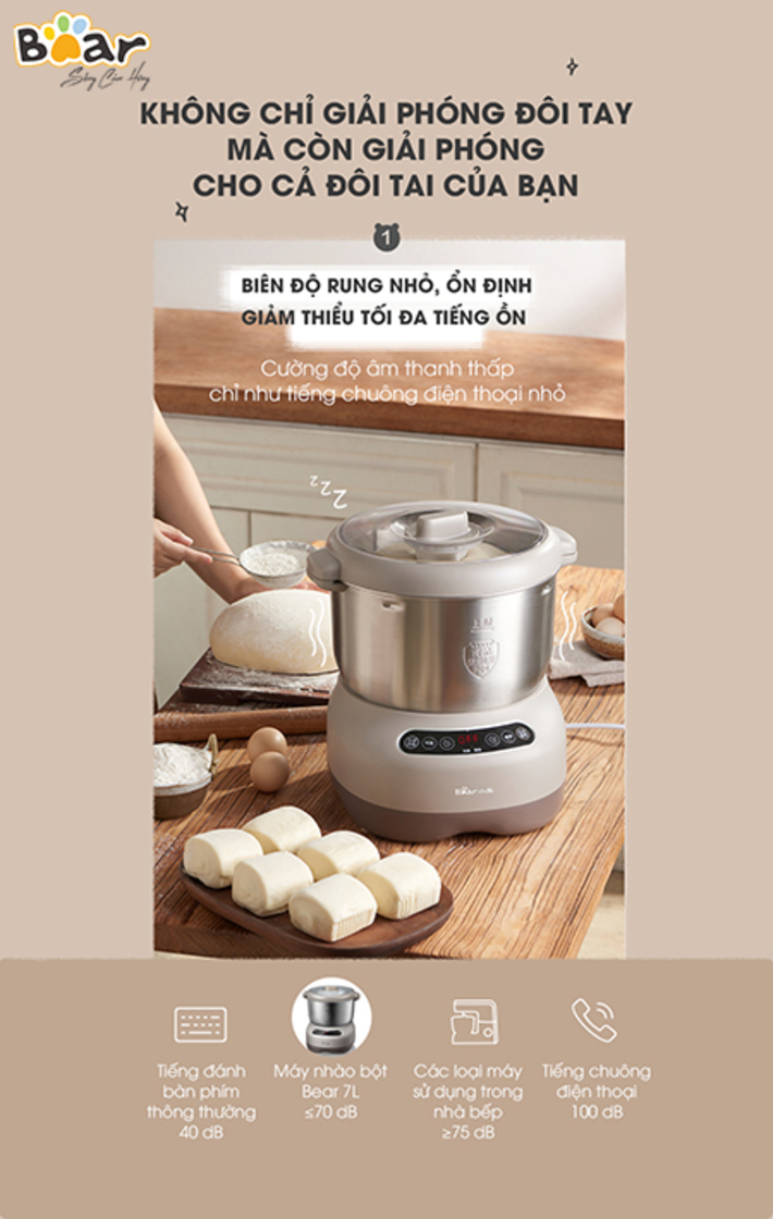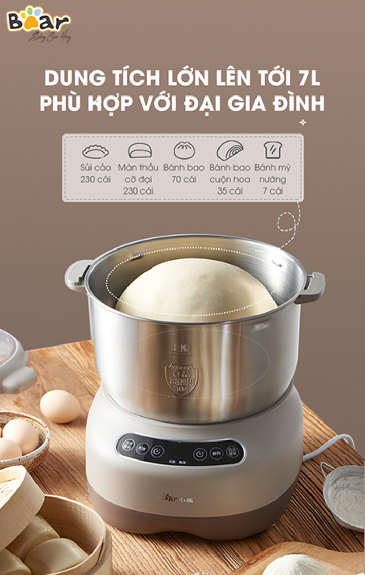 Máy nhồi trộn bột Bear 7L nhào bột, ủ bột tự động, âu trộn thép không gỉ – Hàng chính hãng bảo hành 18 tháng 6 Lý do nên mua MÁY NHỒI TRỘN BỘT BEAR
