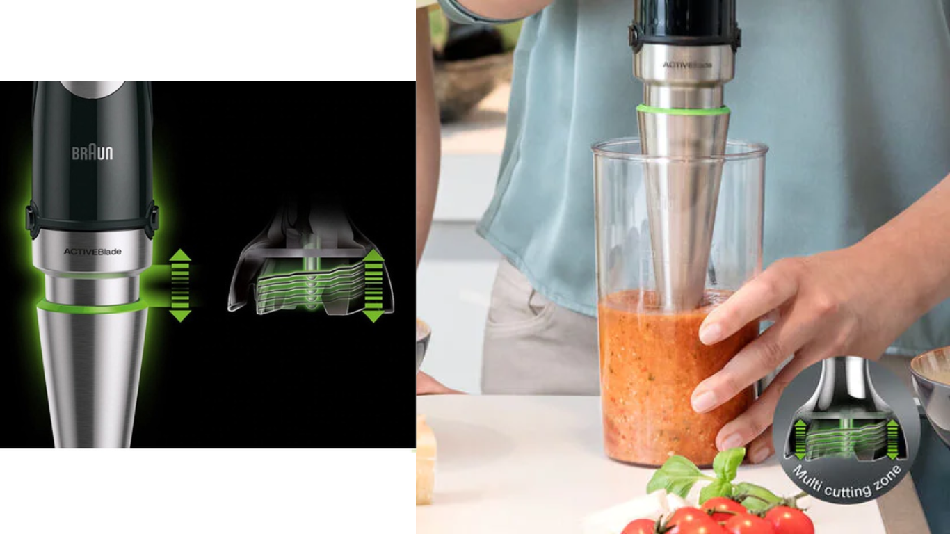 Công nghệ ActiveBlade: Với công nghệ được phát triển đặc biệt này, lưỡi dao di chuyển lên xuống, xay nhuyễn ngay cả những loại thực phẩm cứng nhất mà ít tốn sức hơn 40%.