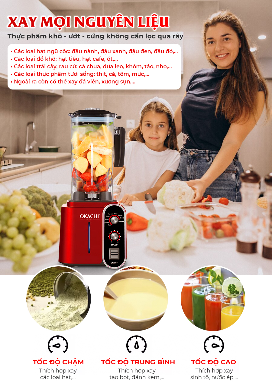 ✨Máy xay công suất lớn OKACHI JP-B22 2200W (màu đỏ) - Hàng chính hãng