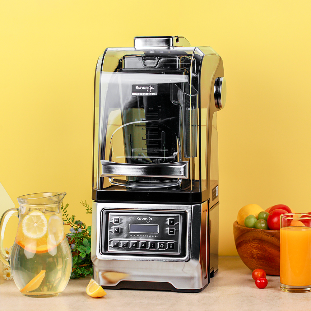 Máy xay sinh tố tự động hút và xả chân không dành cho kinh doanh hiệu Kuvings hoạt động liên tục 3 phút một lần xay và xay được 200+ ly mỗi ngày, gồm 1 cối xay với công suất cực mạnh 3.5 HP – 32,000RMP, 35 công thức tối ưu hóa cho menu quán cà phê, sinh tố được tích hợp sẵn cùng với 5 chế độ nhớ, dao xay cao cấp chuyên dụng cho kinh doanh không sinh nhiệt với công nghệ xay 3 chiều trong môi trường chân không cho nước sinh tố mịn hơn, màu sắc tươi hơn, chậm tách nước, ít bọt và giữ được nhiều Vitamin, Enzym trong rau củ quả. Bảng điểu khiển một chạm cảm ứng để điều chỉnh 5 chế độ xay tự động, chế độ xay nhanh, chế độ xay thủ công và nhồi, tự động đóng mở nắp, nắp chống ồn, chế độ tự động ngắt điện an toàn khi quá tải hay quá nóng và khóa an toàn khi gắn cối xay không đúng cách, có chế độ tiết kiệm điện tự động, thuận tiện sử dụng kinh doanh nhà hàng, quán bar, quán cafe, khách sạn, màu Inox.