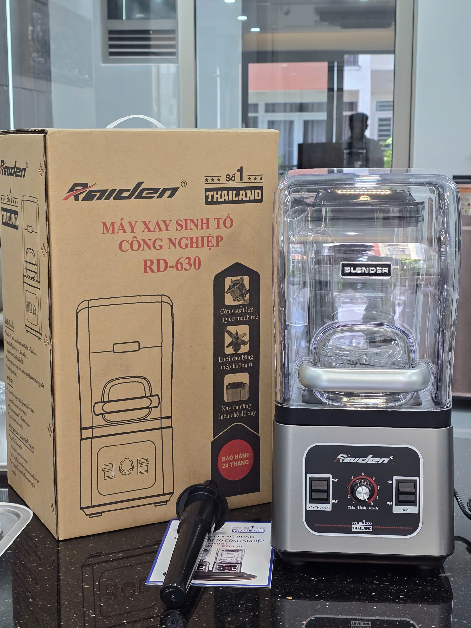 Đập hộp máy xay sinh tố công nghiệp Raiden RD628 RD630, công suất 2680w, dung tích cối 3L