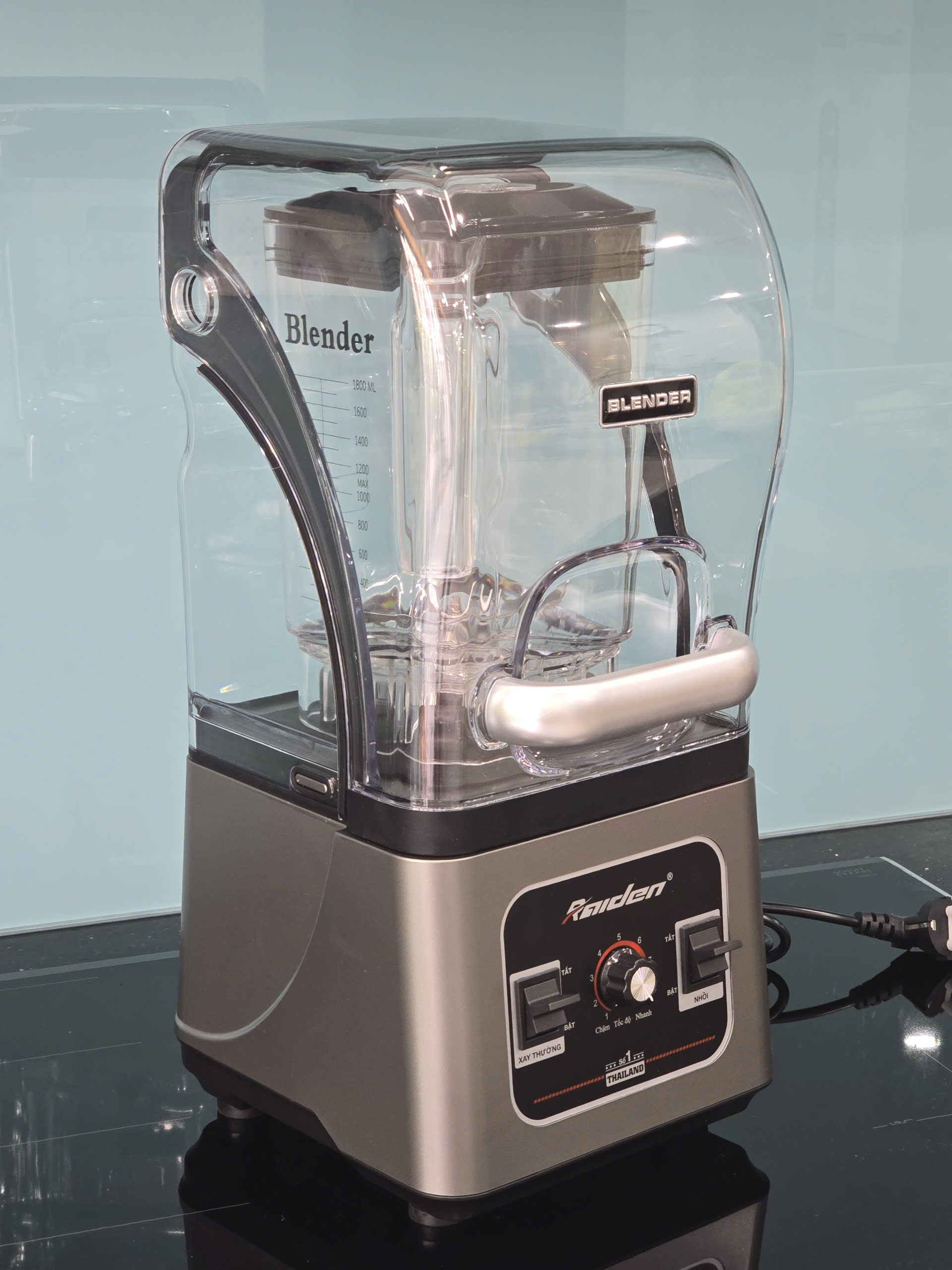 Máy xay sinh tố công nghiệp 2680W Raiden cối nhựa kháng vỡ 3L, chống ồn khi xay BH 24 Tháng   -Đặc biệt có cối chống ồn bên ngoài.   - Xay đá   -
