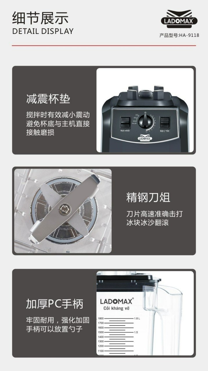 Tên sản phẩm: Máy xay sinh tố Công Nghiệp-Chống Ồn Ladomax