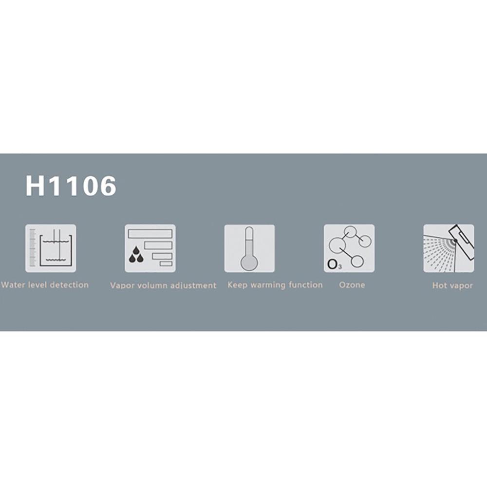 Máy xông mặt Sonia H1106 Thiết bị với kiểu dáng hoàn toàn mới mẻ, kết hợp chân đế bằng thép không rỉ và đèn dài UV được lắp đặt bên trong. Ngoài ra, H1106 còn