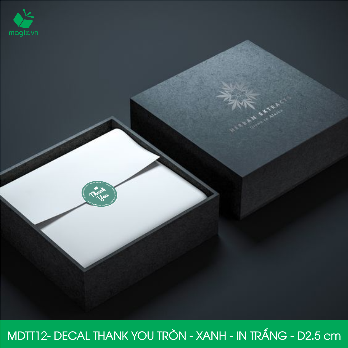 Decal - sticker Thank You là loại nhãn dán có nội dung "Cám ơn" được thiết kế theo hình tròn. Decal Thank You tròn thường được sử dụng để trang trí đóng gói thời trang, quà tặng… để thể hiện sự biết ơn, trân trọng tới người được nhận.   Sticker thank you tròn có nhiều đặc điểm nổi bật như: Kiểu dáng: Có nhiều thiết kế với nhiều hình ảnh, họa tiết hoặc chữ viết khác nhau, từ đơn giản đến cầu kỳ. Dễ dàng lựa chọn mẫu theo mục đích sử dụng. Kích thước: Đường kính: 2.5cm Chất liệu: Decal Thank You được làm từ giấy decal 3 lớp trên bề mặt được phủ thêm 1 lớp màng mờ, tăng khả năng chống thấm nước giúp decal bền hơn. Ngoài ra khi cán thêm lớp màng mờ sẽ giúp món quà trở lên sang trọng và bắt mắt hơn. Công dụng: Dán trên các gói hàng, quà tặng để thể hiện sự biết ơn đối với người nhận Dán trên các sản phẩm, dịch vụ để thể hiện sự trân trọng đối với khách hàng Dán trên các tài liệu, văn bản để thể hiện sự cảm ơn đối với người nhận Dán trên các vật dụng trang trí để tạo điểm nhấn   QUY CÁCH KỸ THUẬT Mã sản phẩm: MDTT Kiểu dáng: Hình tròn Đường kính: 2.5cm Đóng gói: 50 tem/ pack Kích thước đóng gói: 3x15cm Chất liệu: Decal 3 lớp - cán màng Màu sắc: Nhiều màu   LƯU Ý:  Bảo quản sản phẩm nơi khô ráo, sạch sẽ tránh tiếp xúc nơi có ánh sáng mặt trời và khu vực độ ẩm cao.