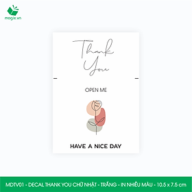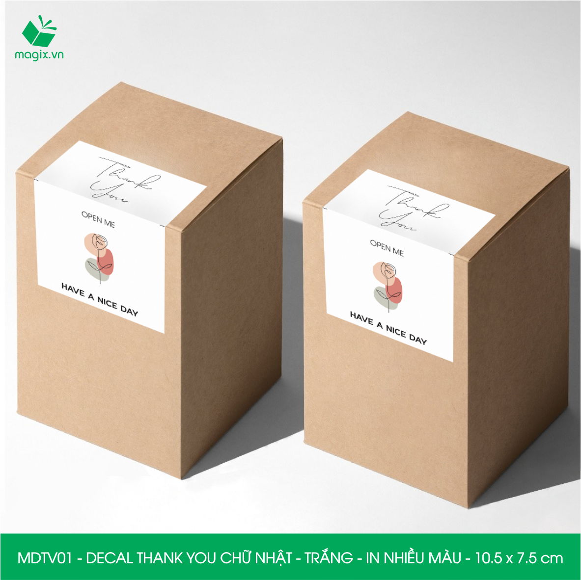 ✨MDTV01 - 10.5x7.5 cm - 50 Decal Thank you hình chữ nhật dán hộp carton, Label Thank you, tem nhãn cảm ơn có sẵn keo dán niêm phong gói hàng