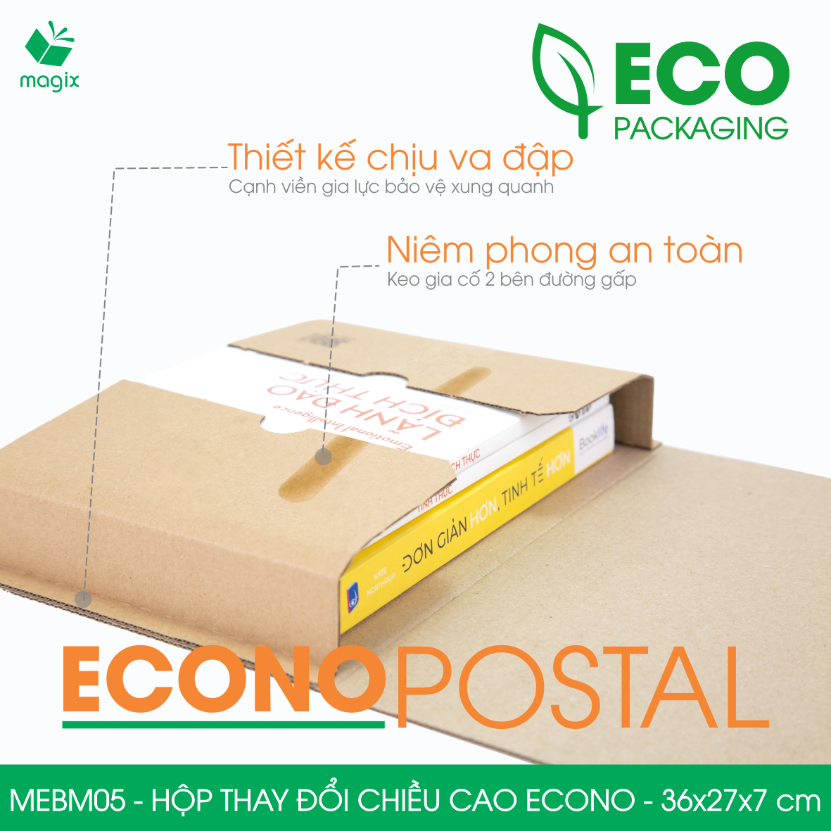 Mua tại TiktokHộp thay đổi chiều cao với thiết kế wrap around (gói xung quanh) độc đáo giúp ôm sát sản phẩm, mang lại vẻ ngoài chuyên nghiệp và đảm bảo an toàn tối đa khi vận chuyển. Nhờ khả năng thay đổi chiều cao linh hoạt, thích hợp để đóng gói sách, tài liệu và các sản phẩm phẳng khác. Thiết kế thông minh giúp đóng hàng nhanh gọn, không cần dùng thêm băng dính, tiết kiệm thời gian xử lý đơn hàng. ĐẶC ĐIỂM SẢN PHẨM