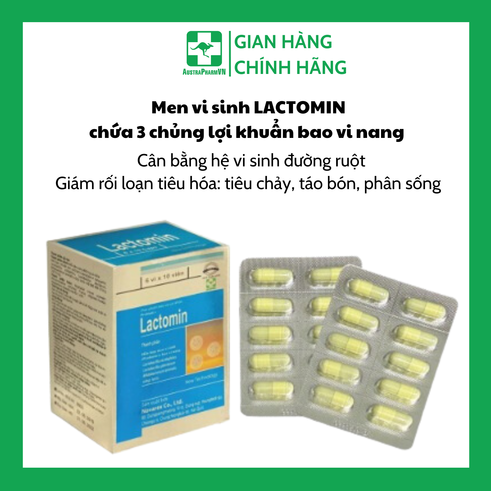 Men vi sinh LACTOMIN hộp 6 vỉ, 10 viên/vỉ, nhập khẩu hoàn toàn từ Hàn Quốc, đã được lưu hành và tin dùng tại Việt Nam hơn 20 năm. *CÔNG DỤNG: - Bổ sung vi