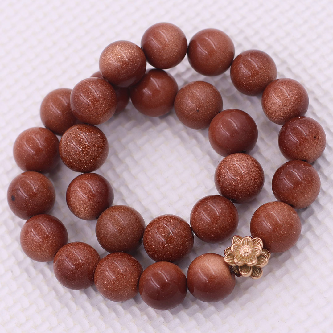 ✨[Mệnh Kim, Thổ] Vòng Chuỗi Niệm Phật Đá Kim Sa Nâu 14 Ly 27 Hạt Charm Hoa Sen Inox, Vòng Chuỗi Phật Giáo, Chuỗi Niệm Phật Hạt To - Phong Thủy 868