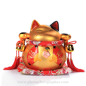 -Mèo thần tài lục lạc may mắn thu hút tài lộc , có khe để tiền , kèm đệm lót xinh xắn , đem nhiều may mắn đến cho gia chủ -Xuất xứ : Trung