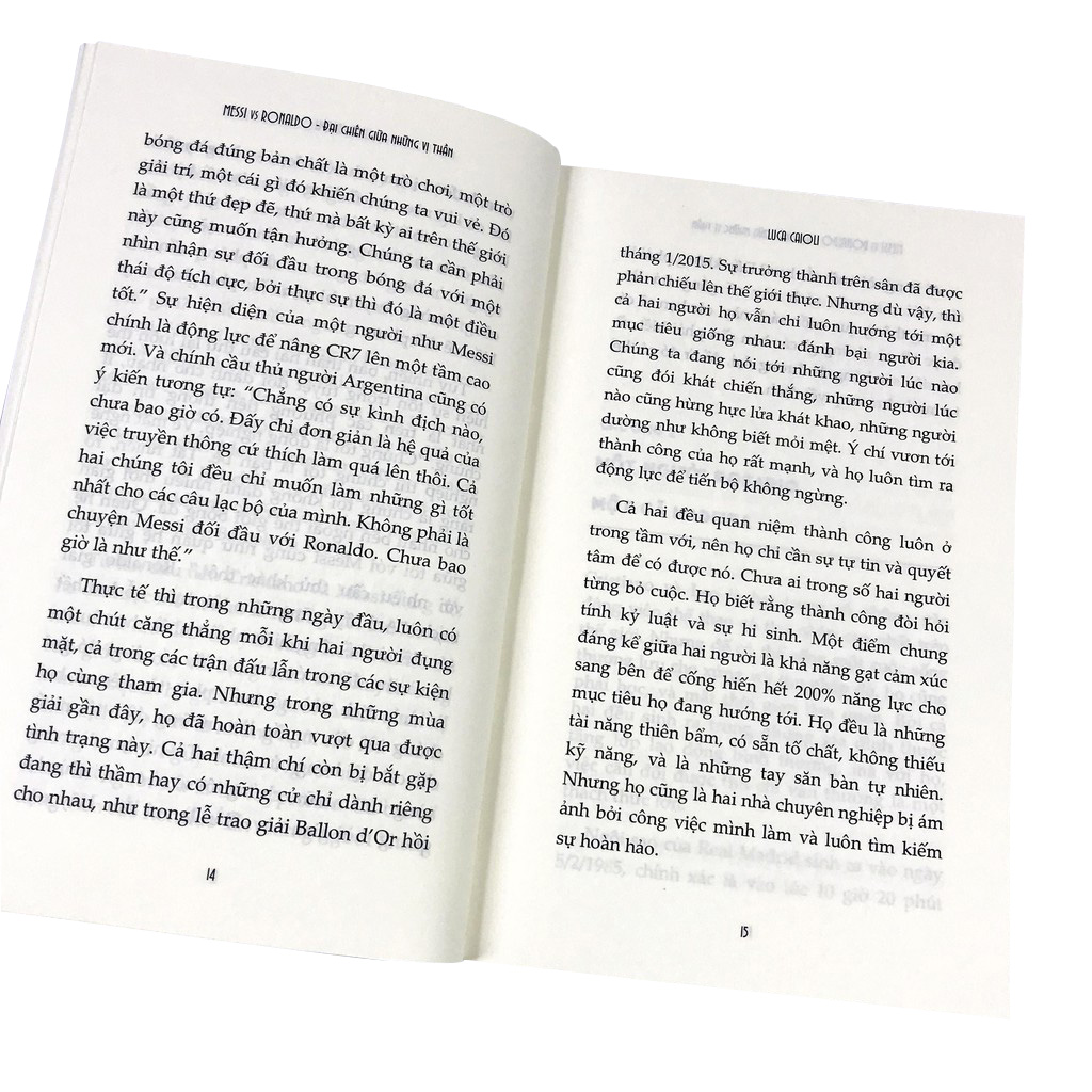 Messi vs Ronaldo - Ai là người xuất sắc hơn? Đấy không phải là câu hỏi mà cuốn sách này cố gắng trả lời. Nhưng thông qua cuốn sách này, các bạn sẽ có được tất cả những gì các bạn cần phải biết về hai siêu sao bóng đá đương đại, để từ đó có thể tự mình đưa ra quyết định