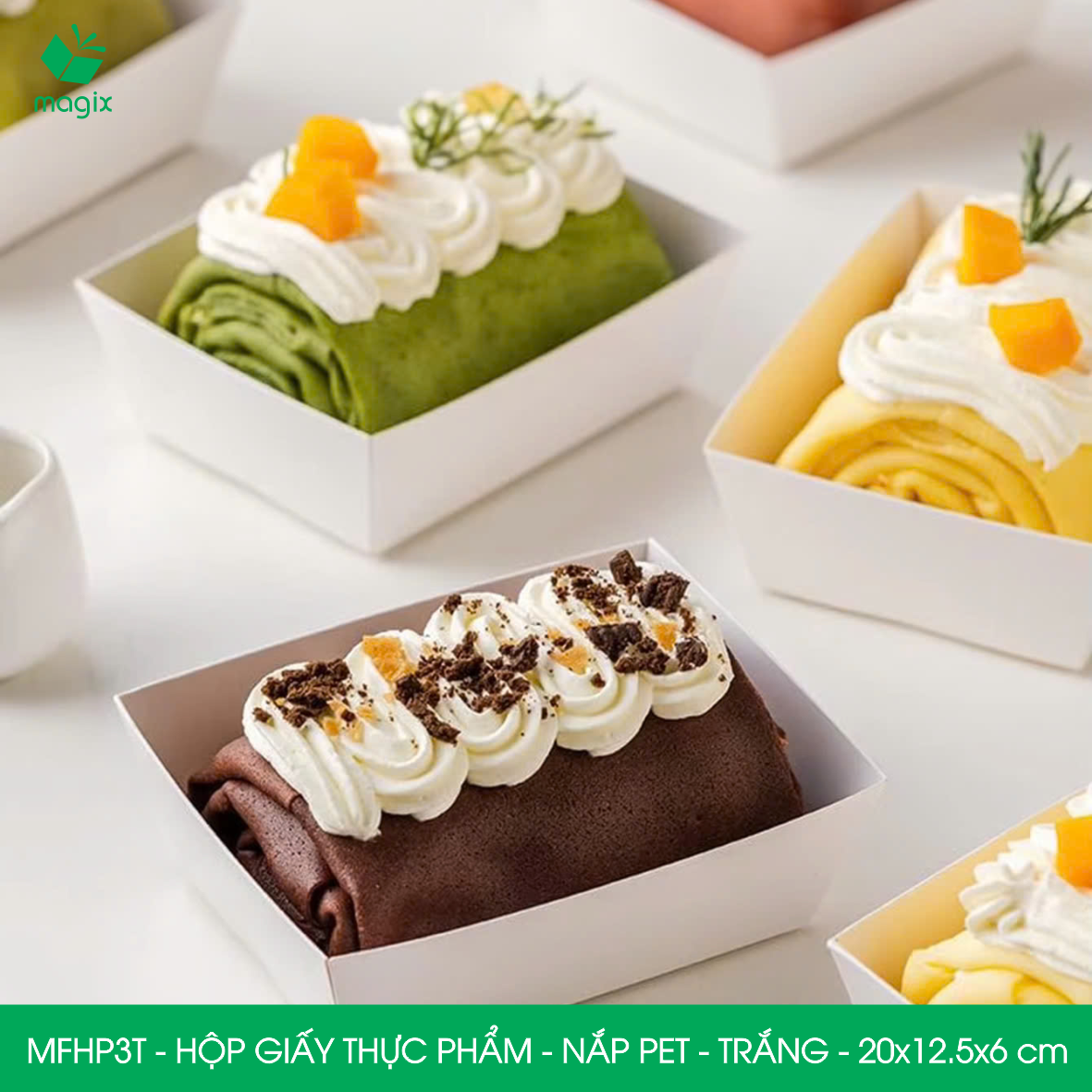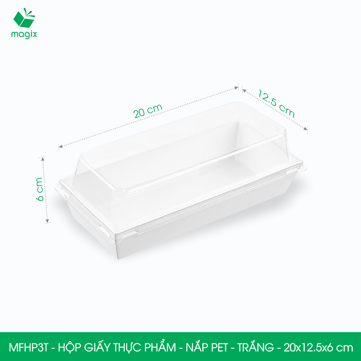 • MFHP3T - Hộp giấy thực phẩm nắp Pet - Trắng - 20x12.5x6 cm