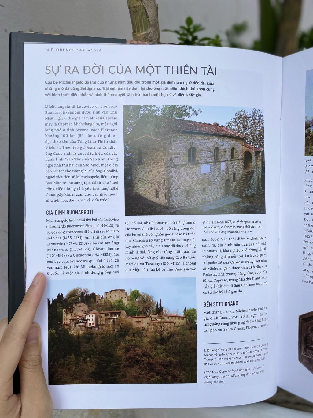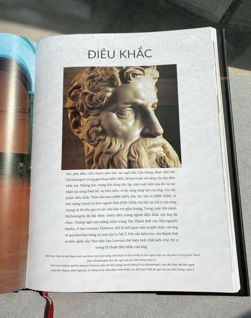 Cuốn sách là một nghiên cứu đồ sộ bằng hình ảnh về cuộc đời và sự nghiệp của bậc thầy điêu khắc giai đoạn Thịnh Phục Hưng – Michelangelo.