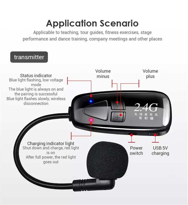 G18 2.4G Wireless Microphone Headset Mic Voice Amplifier Speaker cho Điện Thoại SmartPhone, Android, Trò Chơi Trực Tuyến, Giảng Dạy, Livestream