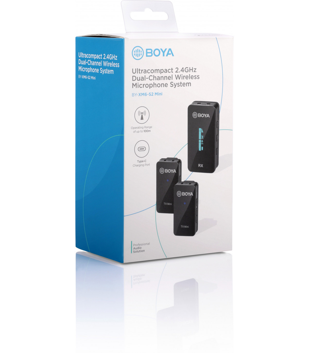 BY-XM6-S2 Mini hệ thống micro không dây tần số 2.4GHz tiên tiến và linh hoạt, từ sự đón nhận microphone Boya BY-XM6, Boya đưa ra sản phẩm mini với những tính năng siêu nhỏ gọn, khả năng truyền tín hiệu ổn định. Sản phẩm cũng có thể dễ dàng kẹp vào quần áo mà không hề đem lại cảm giác khó chịu cho người sử dụng. Micro còn mang đến cho người dùng trải nghiệm ghi âm chất lượng cao, đặc biệt là ở môi trường ngoài trời.