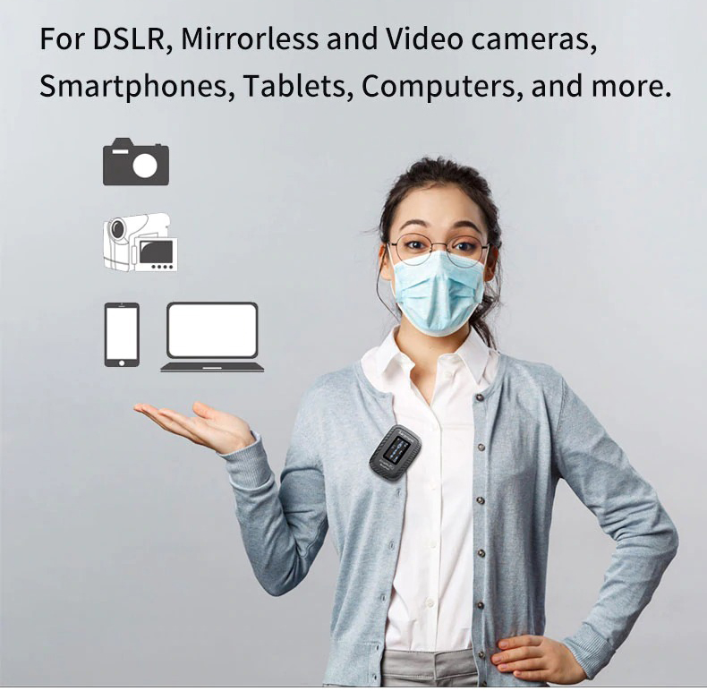 - Micro cài áo không dây Comica Vimo Q được thiết kế với 4 kênh sử dụng cho từ 4 người, với đầu ra kỹ thuật số USB-C và đầu ra Analog 3.5mm giúp tương thích