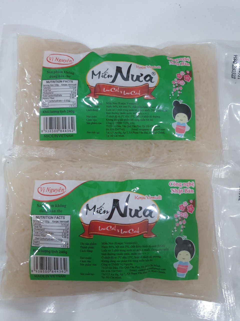 MIẾN NƯA VỊ NGUYÊN 240G - Xuất xứ: Việt Nam - Hạn sử dụng: 6 tháng (gói 240g) - Đóng gói: 240g/gói - Bảo quản: Nơi thoáng mát Những thực phẩm được làm từ bột Glucomanna