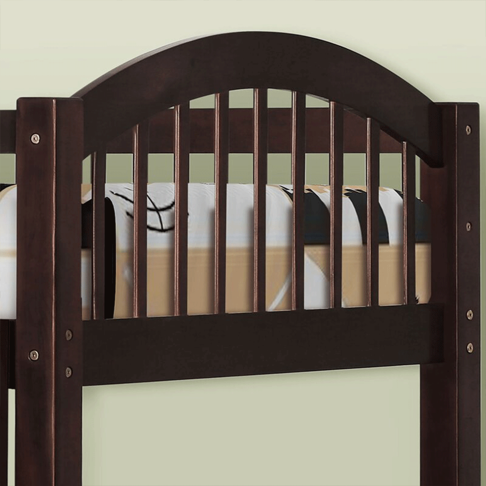 Giường tầng xuất khẩu Dundee có kích thước lọt lòng giường trên/dưới là 100x193 cm / 140 x 193 cm, phủ bì 206x148x178 cm. Khoảng cách giữa 2 tầng là 98 cm, cầu thang bố