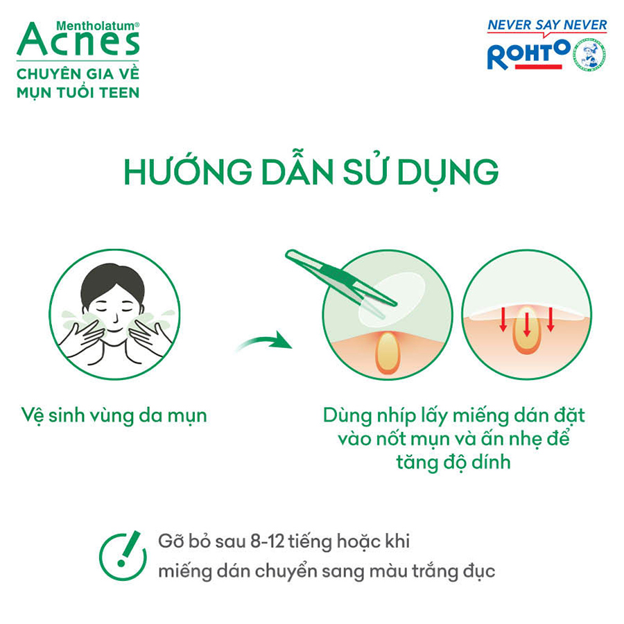 Miếng dán mụn giúp Giảm Mụn Sưng Viêm Acnes Clear Patch mang lại 3 tác động nổi bật: GIẢM MỤN – BẢO VỆ – CHE PHỦ. Với độ dày chỉ 0,2 mm, miếng dán mụn