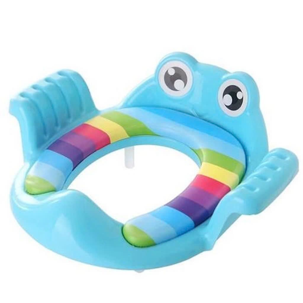 Bô Thu Gọn Bồn Cầu Cho Bé Hình Ếch bằng nhựa có Đệm Lót Ngồi và Tay Vịn phù hợp cả Bé Trai và Bé Gái