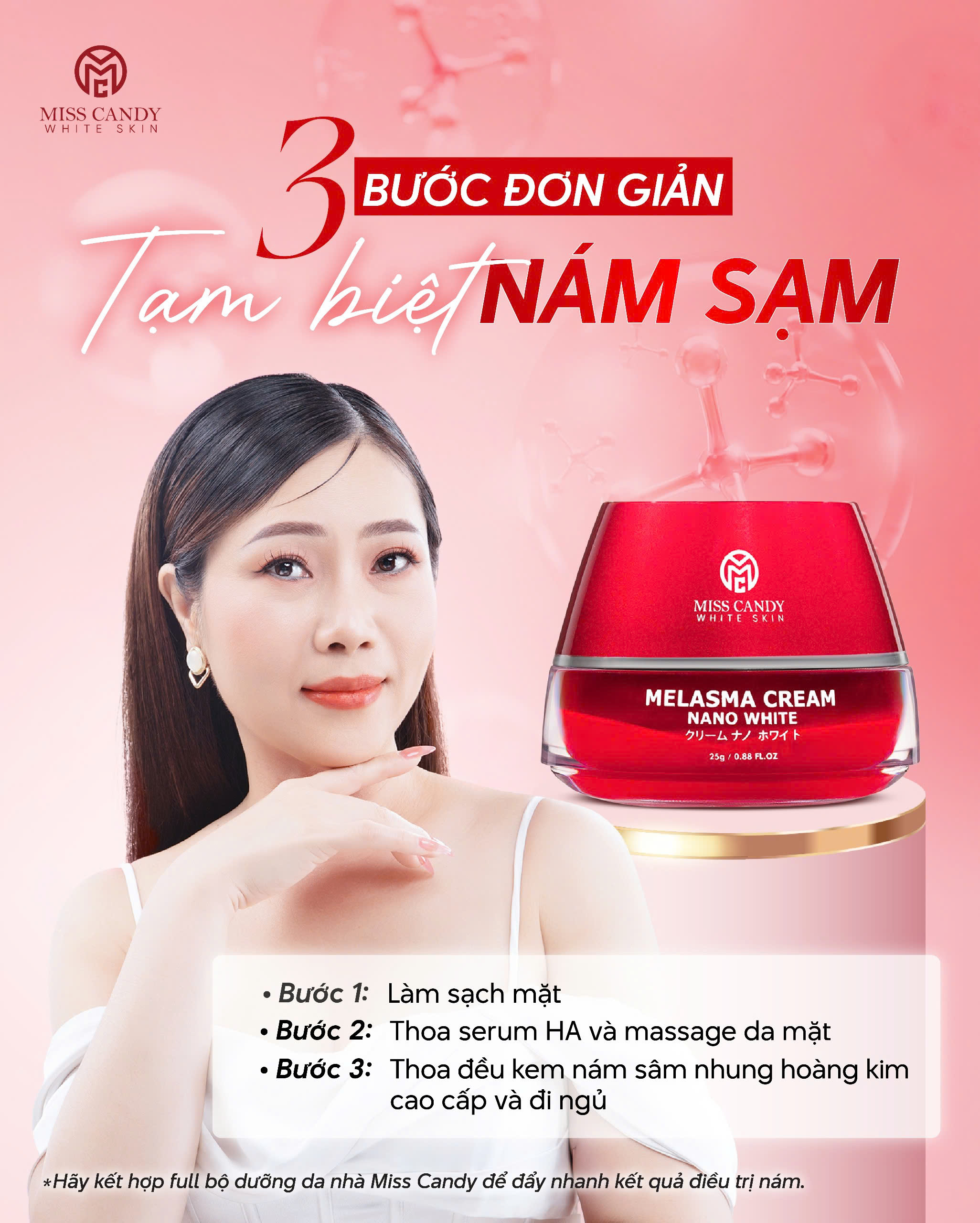 [MISS CANDY] Combo 2 Kem Dưỡng Trắng Da Mờ Thâm Nám Sâm Nhung Hoàng Kim Cao Cấp Melasma Cream Nano White MISS CANDY 25g, Giúp Tái Tạo Da Bị Nhiễm Corticoid, Phục Hồi Làn Da