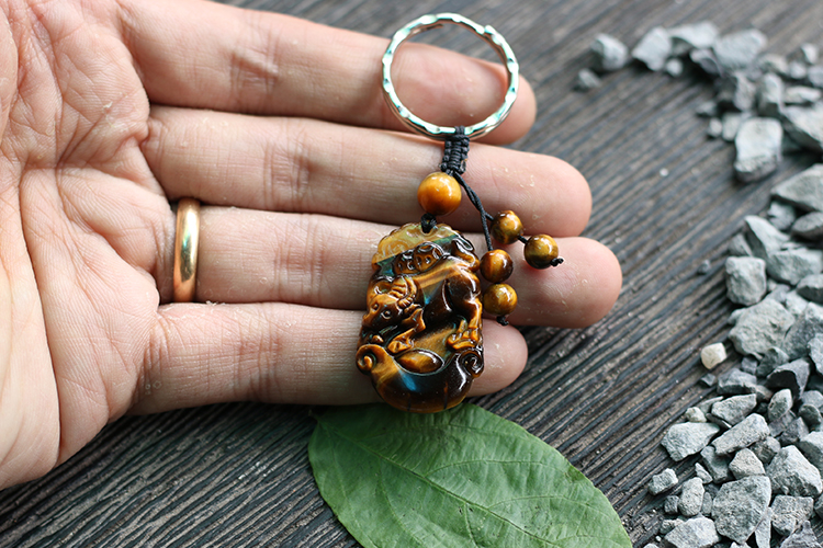 - Móc Khoá Hồ Ly Phong Thuỷ Ngọc Quý Gemstones MK4 - Đá mắt hổ tên gọi quốc tế là Tiger Eye. Sở dĩ có tên gọi như vậy vì khi chiếu ánh sáng vào viên đá nó