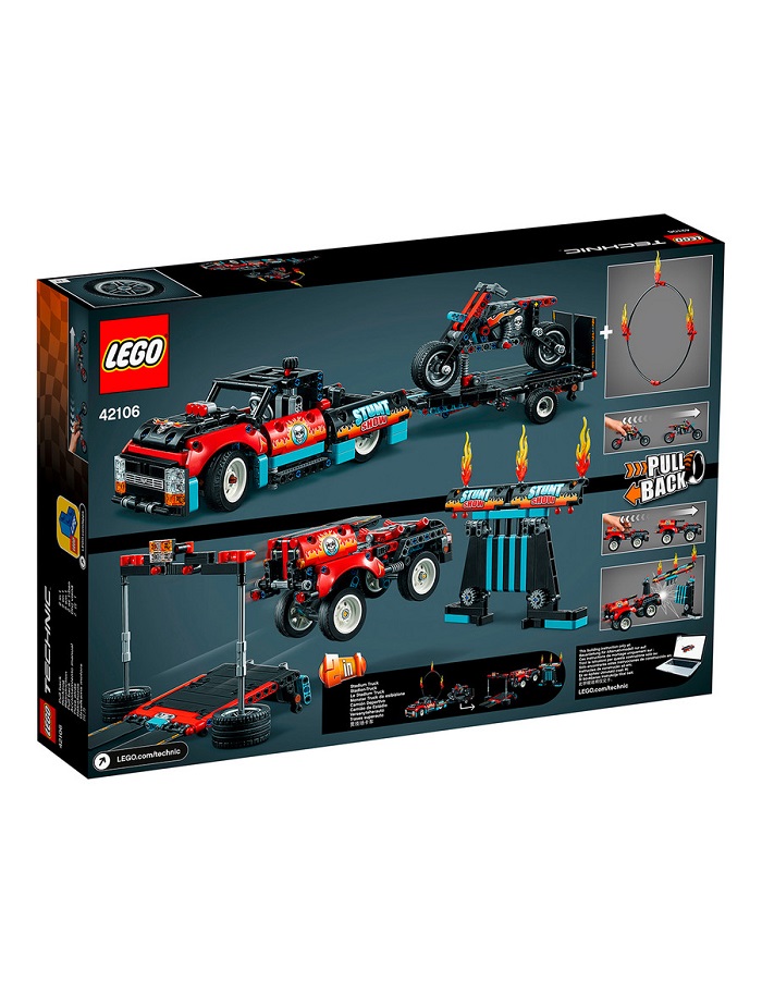 Một thử thách xây dựng đầy hành động, với xe máy, xe tải đón đồ chơi và xe kéo. Và cho những cuộc phiêu lưu cực kỳ táo bạo - một vòng lửa rực lửa! Với điều khiển kéo lùi dễ sử dụng, người hâm mộ xe máy có thể tạo ra những pha nguy hiểm anh hùng khi họ gửi chiếc xe máy đóng thế của họ bay vút về phía ngọn lửa. Chiếc xe tải có tay lái hàng đầu, cửa mở và nhãn dán mát mẻ để kích thích trí tưởng tượng của trẻ em. Trong khi đó, xe máy có lốp chunky và thậm chí nhiều chi tiết nhãn dán. Mô hình 2 trong 1 cho các cuộc phiêu lưu sân vận động tuyệt đẹp Bộ công cụ xây dựng này được tích hợp nhiều tính năng thú vị để giữ cho người xây dựng và người hâm mộ xe máy bận rộn. Đoạn trailer có thể tháo rời biến thành một đường dốc đồ chơi để cung cấp năng lượng cho chiếc xe đạp lên không trung. Sau đó, sau khi thực hiện các pha nguy hiểm, vận chuyển xe máy trong trailer, sẵn sàng cho sự kiện nuôi tóc tiếp theo. Hoặc cho một thử thách mới, xây dựng lại mô hình thành một bộ Xe tải sân vận động. Học các kỹ năng mới với đồ chơi xây dựng LEGO Technic Các nhà xây dựng LEGO có thể khám phá những điều cơ bản về lực và chuyển động với bộ Stunt Show Truck & Bike LEGO Technic 42106 này. Lý tưởng cho người hâm mộ LEGO hoặc bất cứ ai đang tìm kiếm một thử thách xây dựng thú vị.