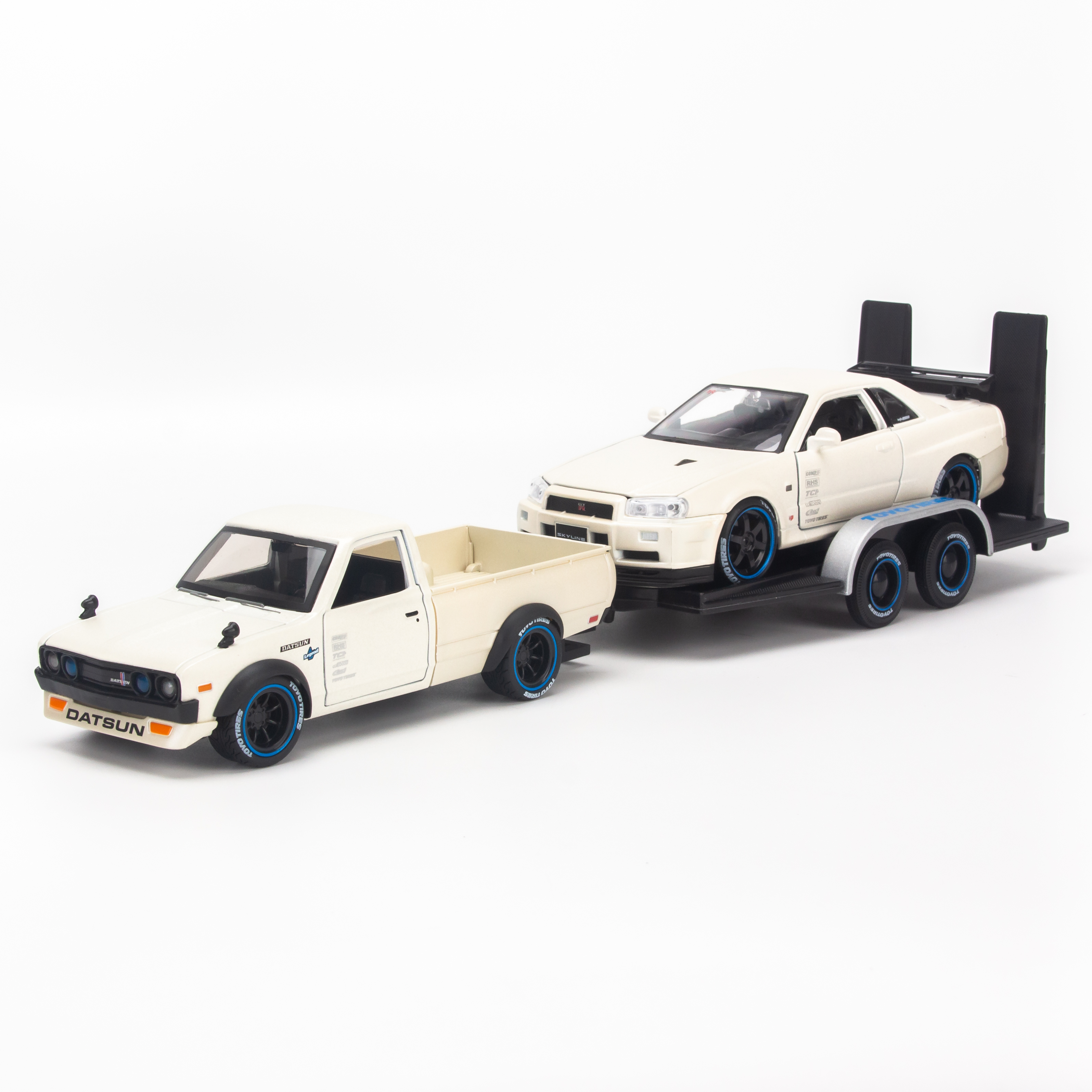 Datsun 620 Pickup & Nissan Skyline R34 GT-R with Trailer by Maisto Diecast Collector Unboxing