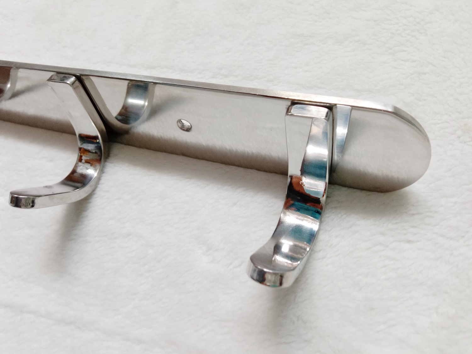 - Kiểu inox: bóng -Móc áo được làm bằng chất liệu SUS 304, không gỉ sét, sáng bóng và có độ bền cao.