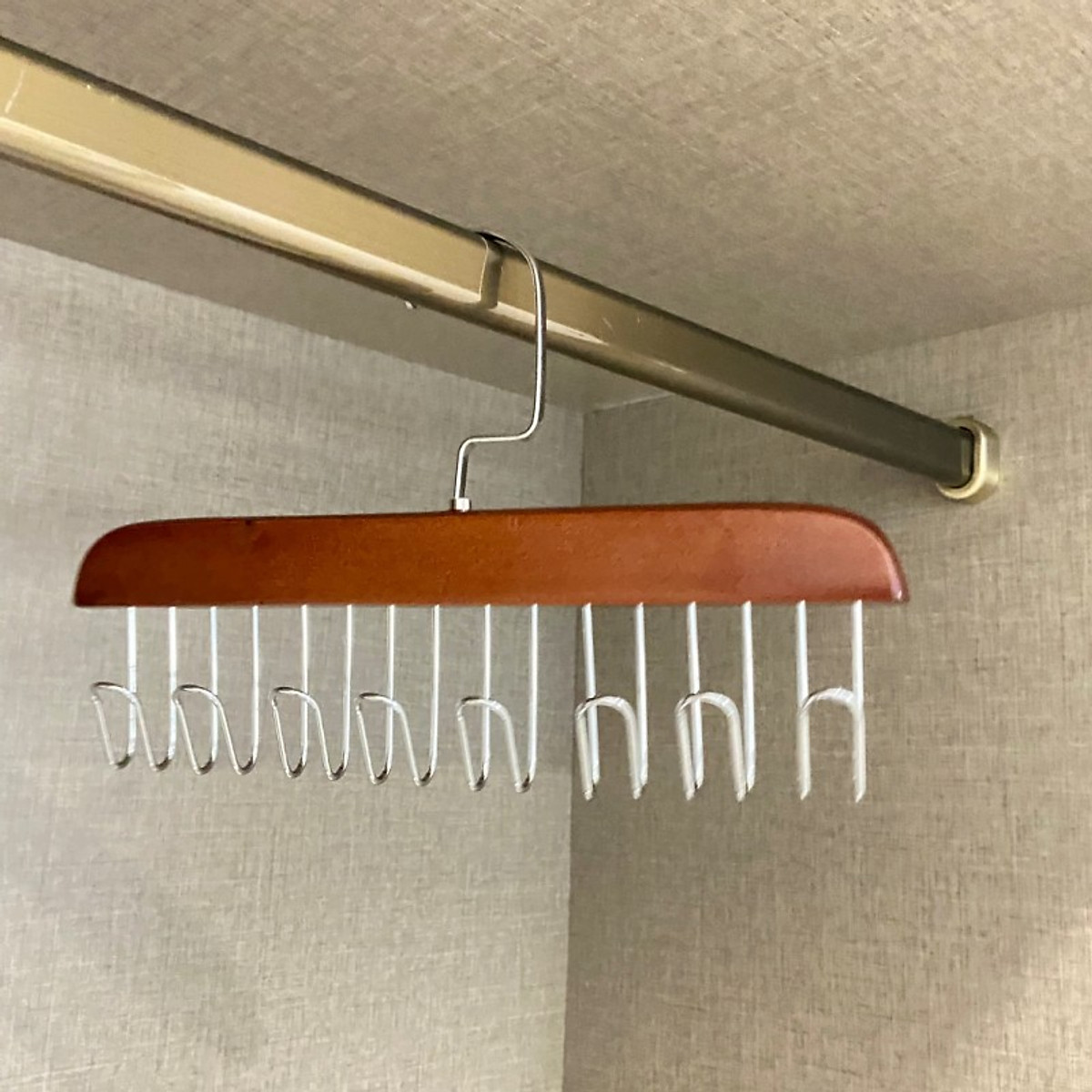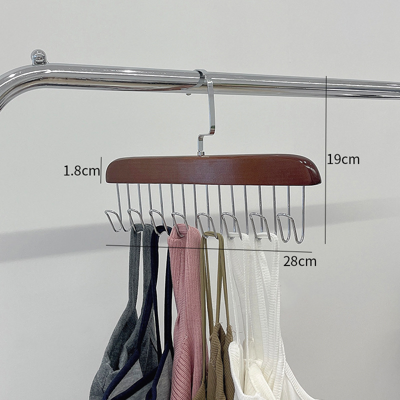 Móc Gỗ Treo Đồ Lót, Thắt Lưng, Cà Vạt- Móc Treo Áo 2 Dây, Mũ, Khăn Đa Năng - Chất liệu: kim loại + móc treo cà vạt gỗ - Kích thước 8 móc: 28