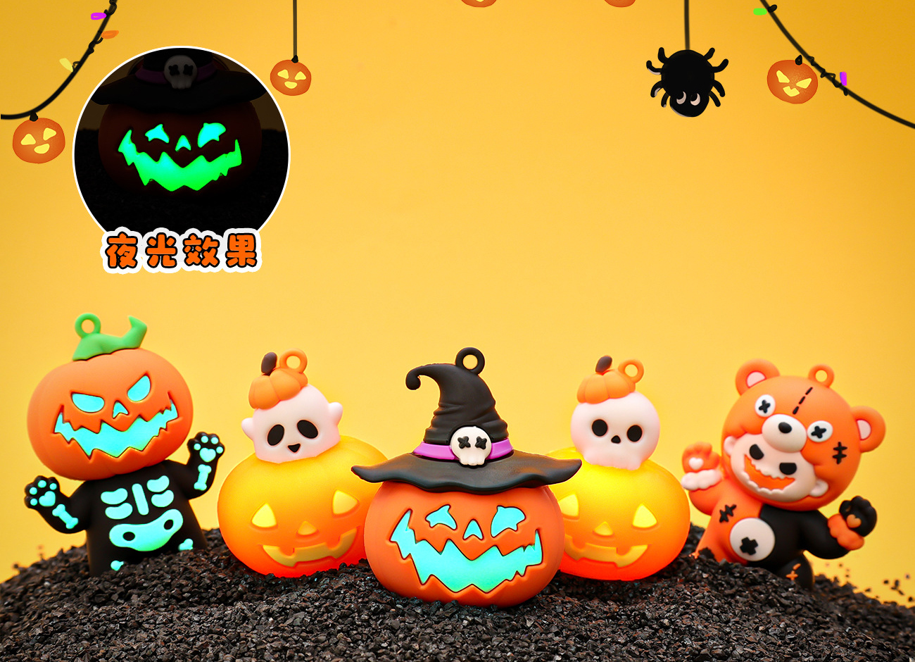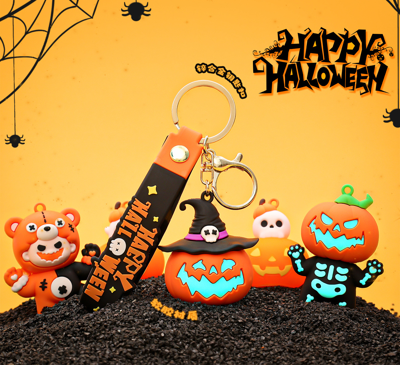 ✨Móc khóa bí ngô Halloween có đèn phát sáng dùng làm quà tặng trang trí