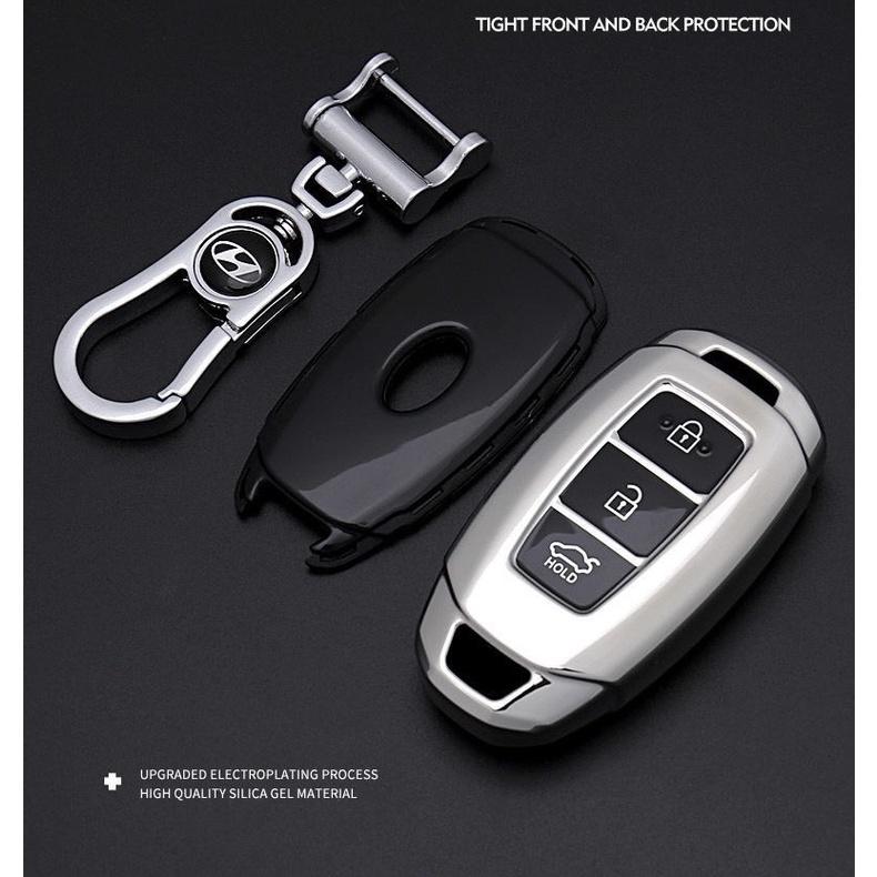✨Móc khóa kèm ốp bảo vệ chìa khóa xe Hyundai Accent 2019, Accent 2021, Tucson, i10 nhựa mềm TPU tráng gương.