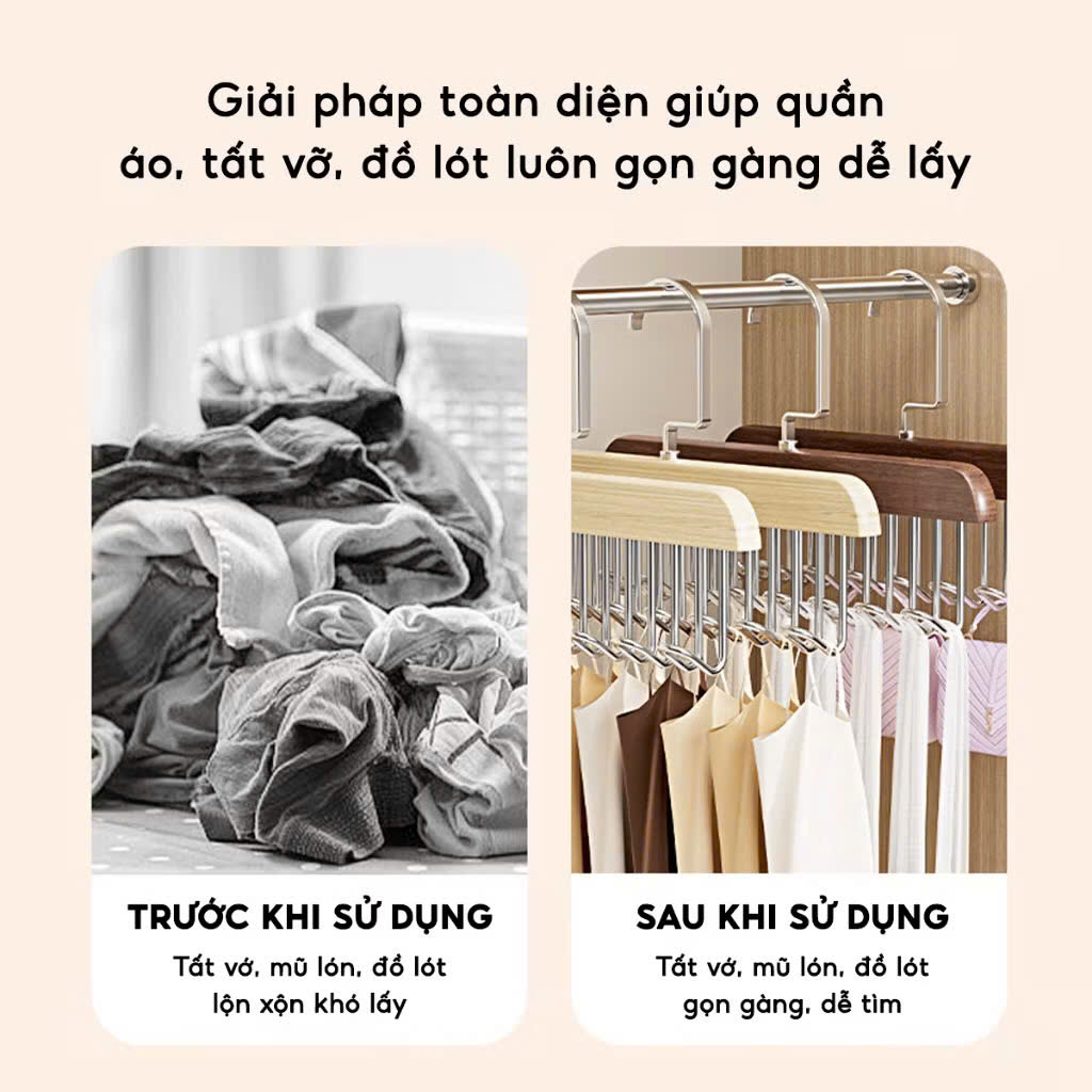 Móc treo áo 2 dây bra đa năng tiện lợi, giá treo 8 mắc bằng gỗ treo áo lót cà vạt thắt lưng túi xách