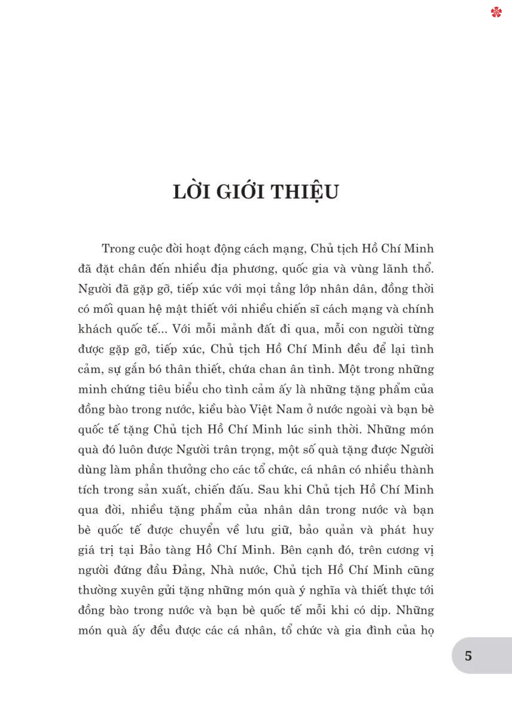 Mua tại TiktokVới mong muốn những câu chuyện thú vị ẩn chứa sau mỗi kỷ vật được đến gần hơn với đông đảo công chúng, Bảo tàng Hồ Chí Minh phối hợp với Nhà xuất bản Chính trị quốc gia Sự thật xuất bản cuốn sách Mỗi kỷ vật, một câu chuyện. Cuốn sách giới thiệu một số tặng phẩm đặc sắc của Chủ tịch Hồ Chí Minh hiện đang được lưu giữ tại Bảo tàng Hồ Chí Minh.