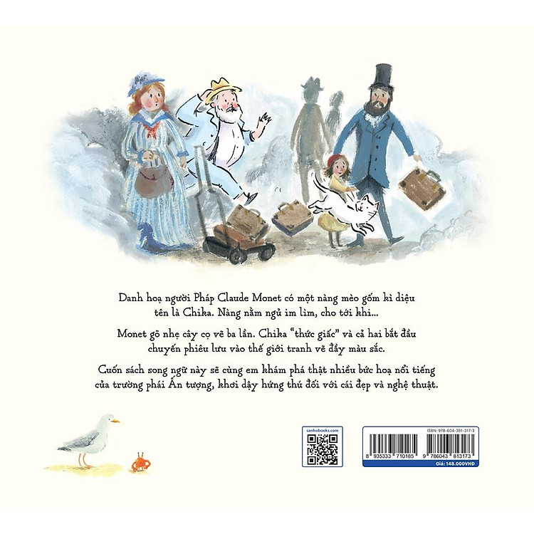 Monet gõ nhẹ cây cọ vẽ ba lần. Chika “thức giấc” và cả hai bắt đầu chuyến phiêu lưu vào thế giới tranh vẽ đầy màu sắc. Cuốn sách song ngữ này sẽ cùng các bạn nhỏ khám phá những bức hoạ nổi tiếng của trường phái Ấn tượng.