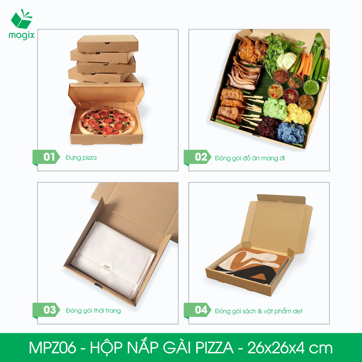 ✨MPZ06 - 26x26x4 cm - 20 Hộp nắp gài pizza đa dụng - Hộp nắp gập, hộp carton gói hàng, hộp quà
