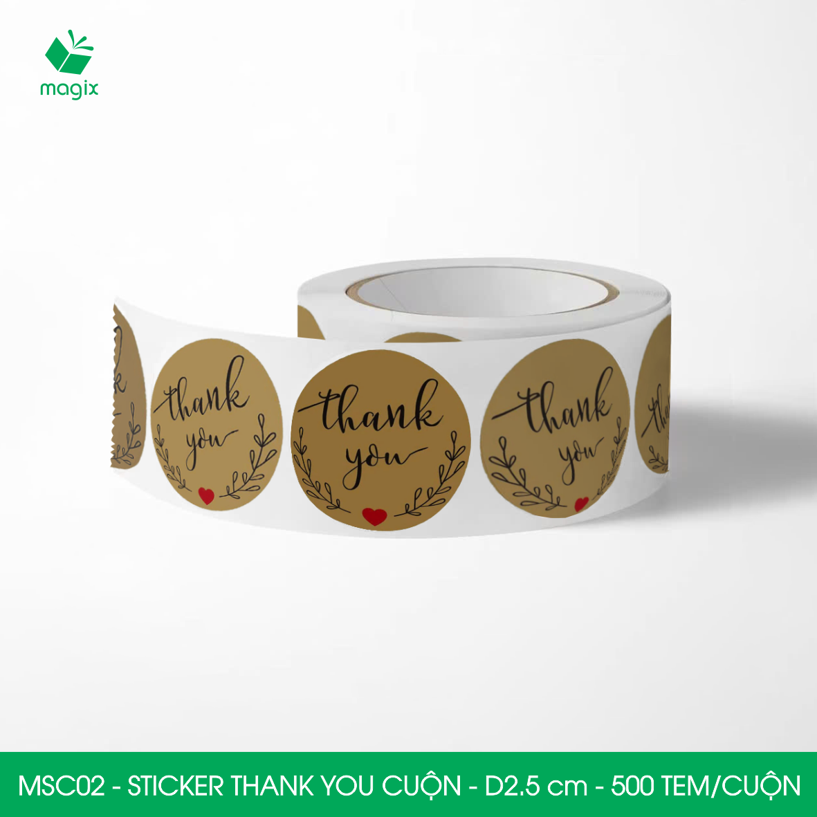 ✨MSC02 - D2.5 cm - 1 Cuộn 500 sticker thank you tròn, nhãn dán thank you, tem dán cảm ơn