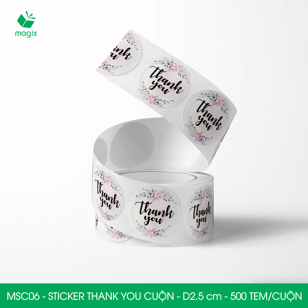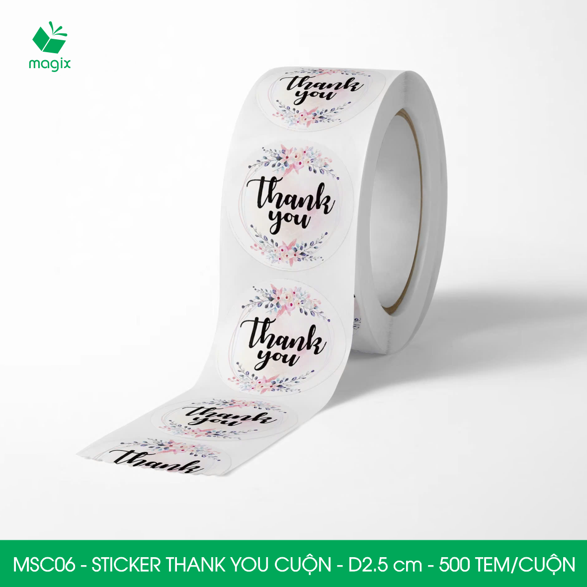 ✨MSC06 - D2.5 cm - 1 Cuộn 500 sticker thank you tròn, nhãn dán thank you, tem dán cảm ơn