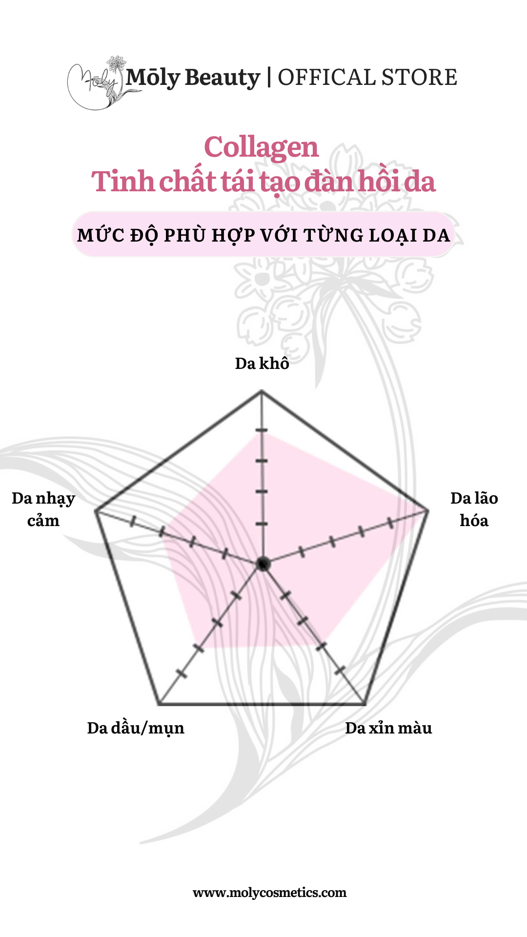 Với sự kết hợp của 3 loại tinh chất Collagen tiên tiến, sản phẩm chăm sóc da này là lựa chọn lý tưởng cho phụ nữ khi da bắt đầu có dấu hiệu mất độ đàn hồi và căng bóng.