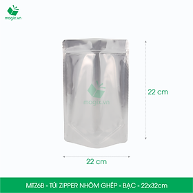 ✨MTZ6B - 22x32cm - Combo 25 Túi Zipper Bạc đáy đứng, một mặt trong