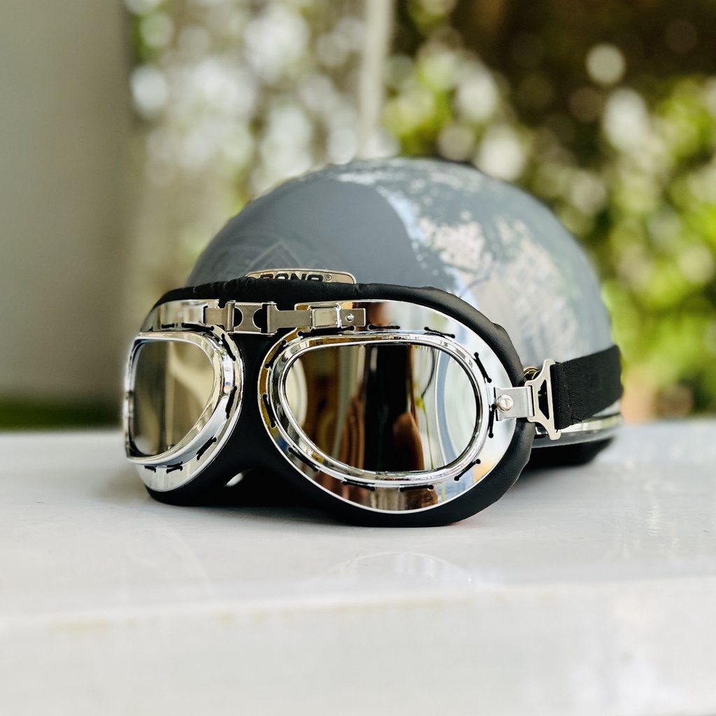 Mũ bảo hiểm nửa đầu freesize Rona hali viền bạc kèm kính phi công bạc Mũ bảo hiểm nửa đầu Rona haly viền bạc kèm kính phi công bạc cho nam và nữ đi xe