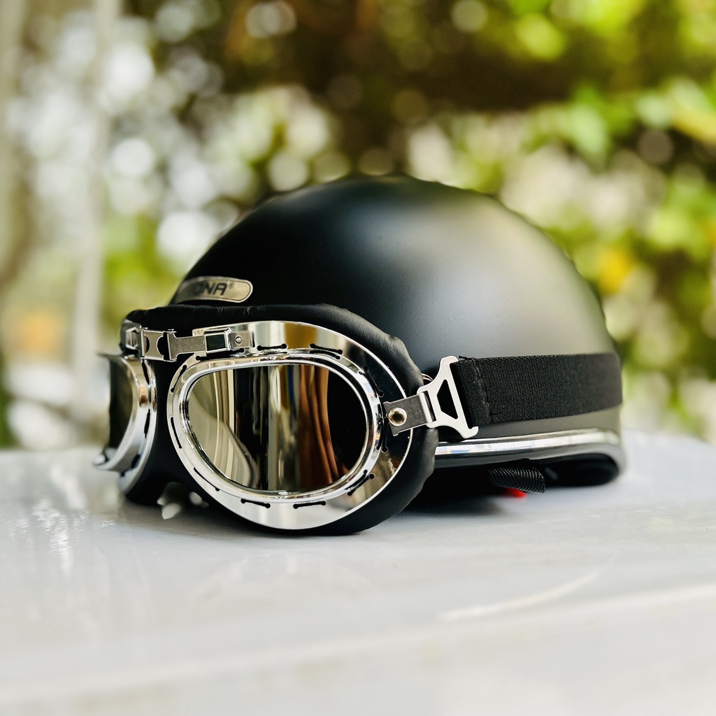 Mũ bảo hiểm nửa đầu RONA Hali viền bạc kèm kính phi công viền bạc được thiết kế nhỏ gọn, phù hợp với việc đi xe máy gần như dạo phố.