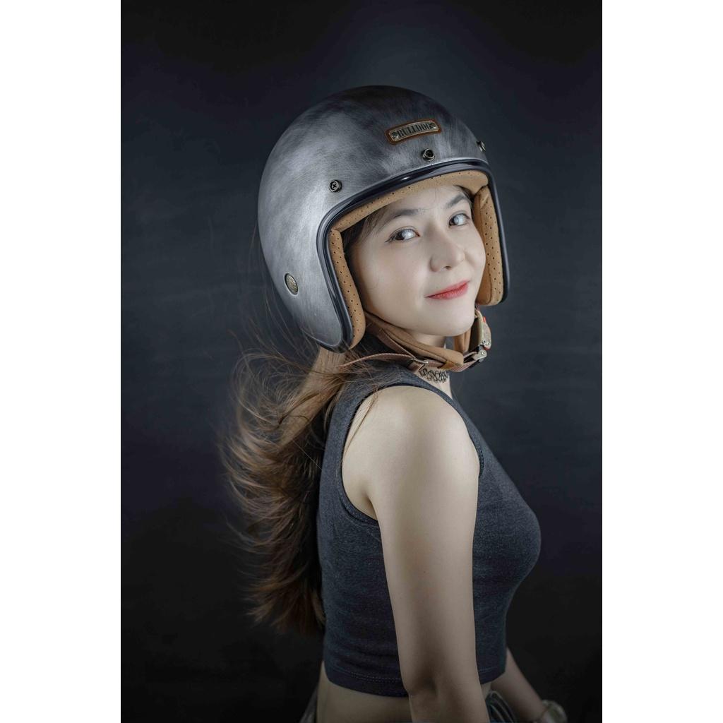 Mũ 3/4 Bulldog Heli Fiberglass 2021 (Chương trình tặng kèm khóa số đã kết thúc) Bulldog Heli Fiberglass 3/4 đậm chất cổ điển và được trau chuốt tỉ mỉ đến từng chi tiết, đặc biệt chất