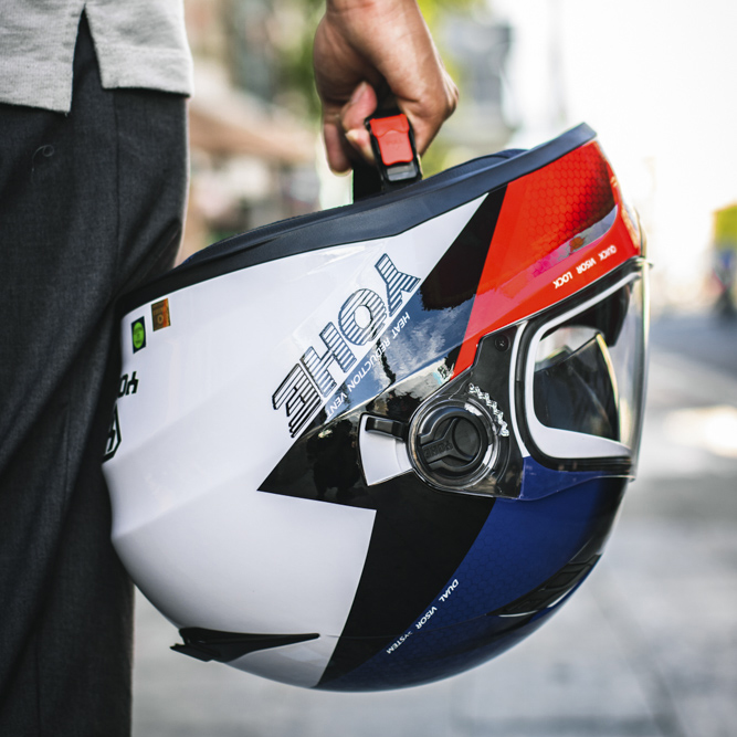 Chốt kính trong được thiết kế ngay bên hông dưới dạng chốt gạt, giúp người đội dễ dàng điều chỉnh ngay cả khi đeo găng tay lái xe