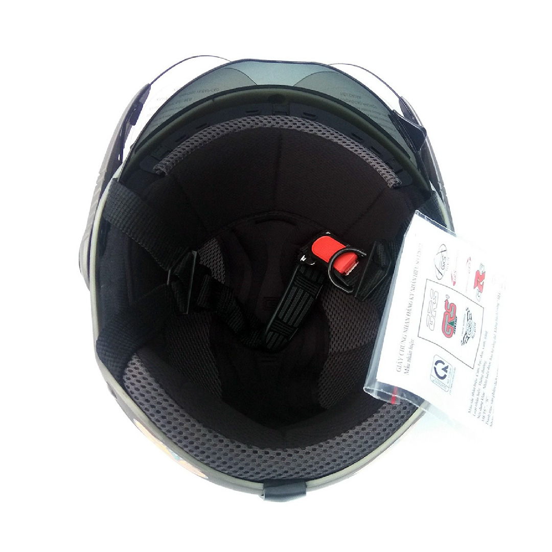 Mũ bảo hiểm GRS A966K 2 Kính – Vệ sĩ chống tia cực tím: Khi ta phơi mình dưới các điều kiện thời tiết khắc nghiệt lâu, bạn dễ bị bệnh. Do vậy, ta thường mặc áo khoát bảo vệ da, mang khẩu trang chống bụi, áo mưa…Nhưng cặp mắt thường bị chúng ta bỏ quên mặc dù các bệnh về mắt do ánh nắng, khói bụi gây ra khá nhiều. Mũ bảo hiểm GRS A966k được xem là dòng sản phẩm có tính năng bảo vệ mạnh, đặc biệt cặp mắt của mặt được bảo vệ qua 2 lớp kính. Lớp kính mát được dấu bên trong mũ rất tiện lợi, gọn nhẹ. Khi bị chói nắng, bạn dễ dàng kéo kính mát này xuống che phủ mắt bạn, tác dụng như chiếc kính râm mà bạn hay bỏ quên ở nhà. Lớp kính che bên ngoài to hơn, bao phủ 2/3 mặt bạn giúp chống bụi, mưa … giúp bạn thoải mái dù thời tiết có khắc nghiệt thế nào. Ngoài ra, lớp lót bên trong mũ còn có thể dễ dàng tháo rời ra để giặt. Tính năng này chỉ có ở 1 số dòng mũ bảo hiểm cao cấp. Điều này giúp bạn luôn cảm thấy tự tin về chiếc mũ và da đầu của mình, ko sợ bị lây các bệnh về da đầu và tóc khi sử dụng chung hoặc cho mượn nón bảo hiểm... Do là dòng sản phẩm mũ bảo hiểm ½ đầu, GRS A966K có thể sử dụng khi bạn đi trong nội thành lẫn xa lộ. Mũ có nhiều màu sắc đa dạng như : đen, xanh mực, bạc, xám… *** Hướng dẫn xác định cỡ mũ phù hợp: Vòng 1 sợi dây quanh đầu, phía trên lông mày và tai khoảng 2cm. Xiết sợi dây sao cho ôm vừa đủ thoải mái lấy đầu và ghi lại số đo đó. Lặp lại như vậy để tìm được số đo mà bạn thấy đầu dễ chịu. Đó chính là size đầu của bạn. So sánh với kích cỡ mũ để lựa chọn size mũ phù hợp.
