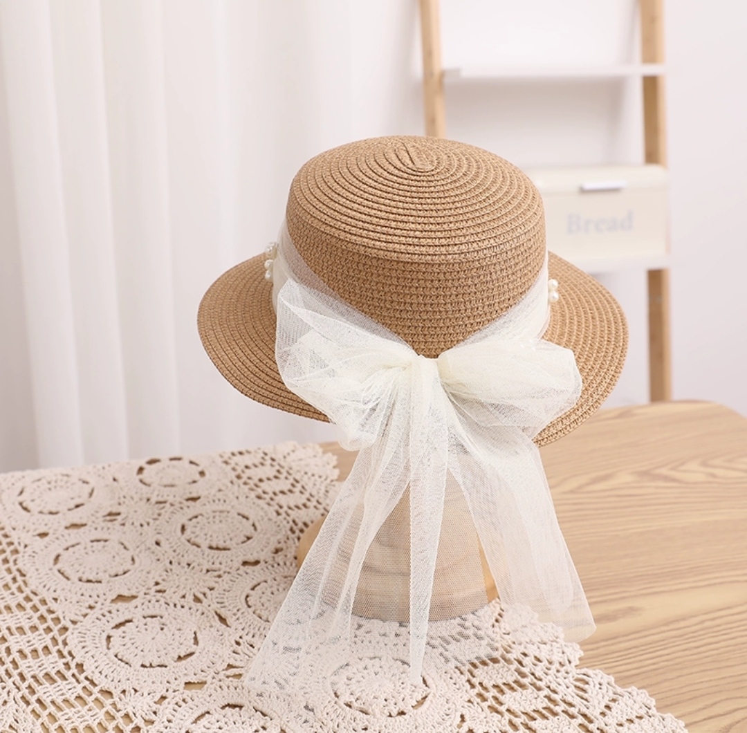 ✨Mũ nón đi biển vành nhỏ chóp bằng phối đai trắng ngọc trai nhân tạo chất liệu cói chống nắng thoáng mát thời trang Hàn Quốc Dona240607