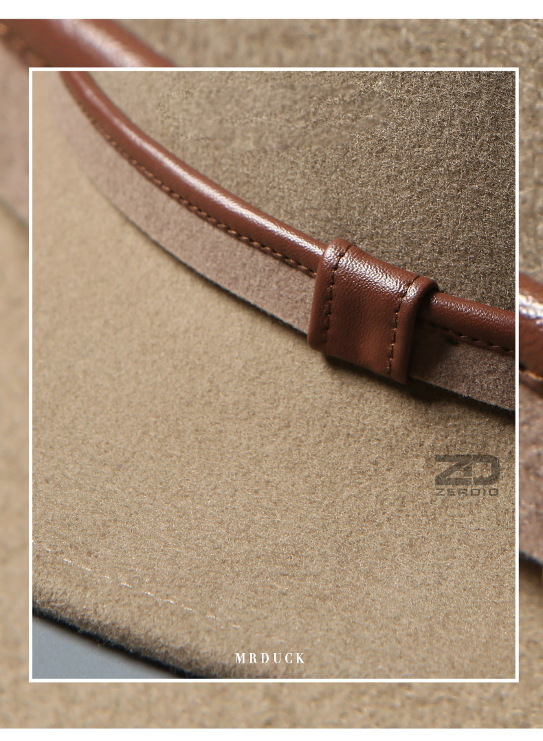Mũ Cao Bồi Miền Tây Nam Nữ Chất Liệu Lông Dê Nội Mông Cổ MP055 thiết vành rộng và cong, viền đai thắt da tạo điểm nhấn, chi tiết trang trí bằng kim loại sang