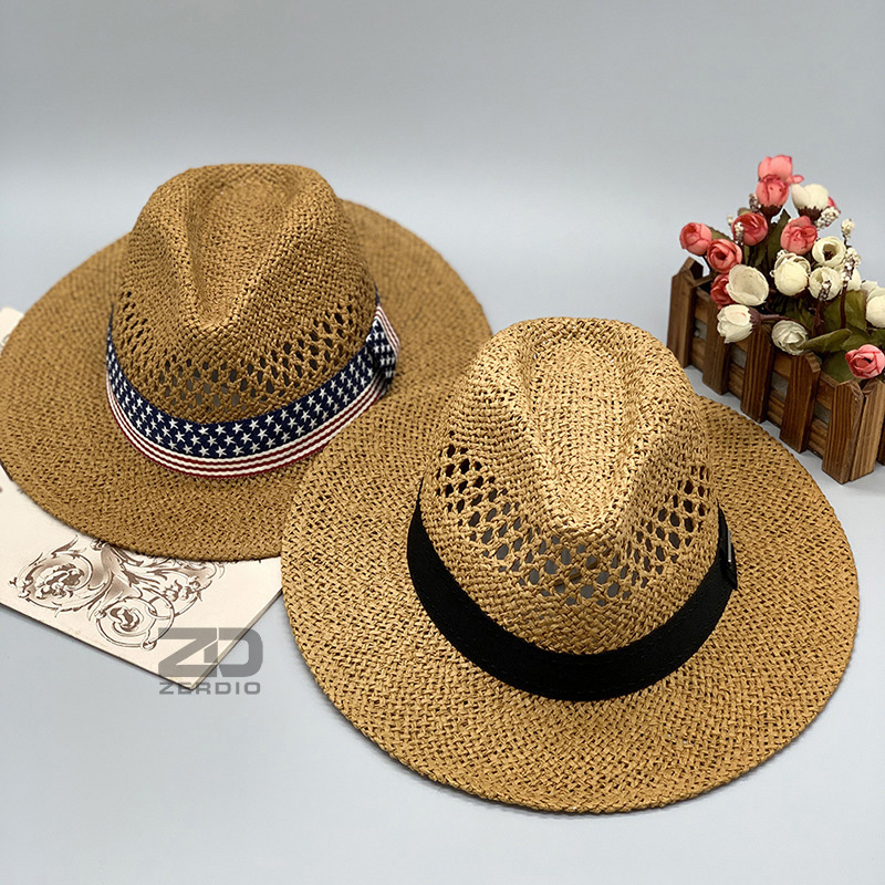 Nón cao bồi mũ phớt mũ cao bồi rộng vành Chất liệu cói rơm Hàng nhập