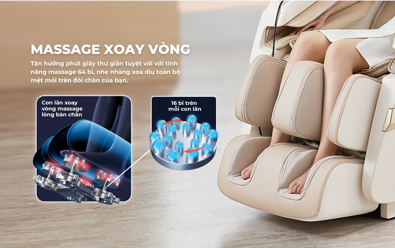 Với cụm 64 bóng lăn ở chân, ấn huyệt toàn bộ bàn chân, giúp thải độc và nuôi dưỡng “Trái tim thứ 2” của bạn.
