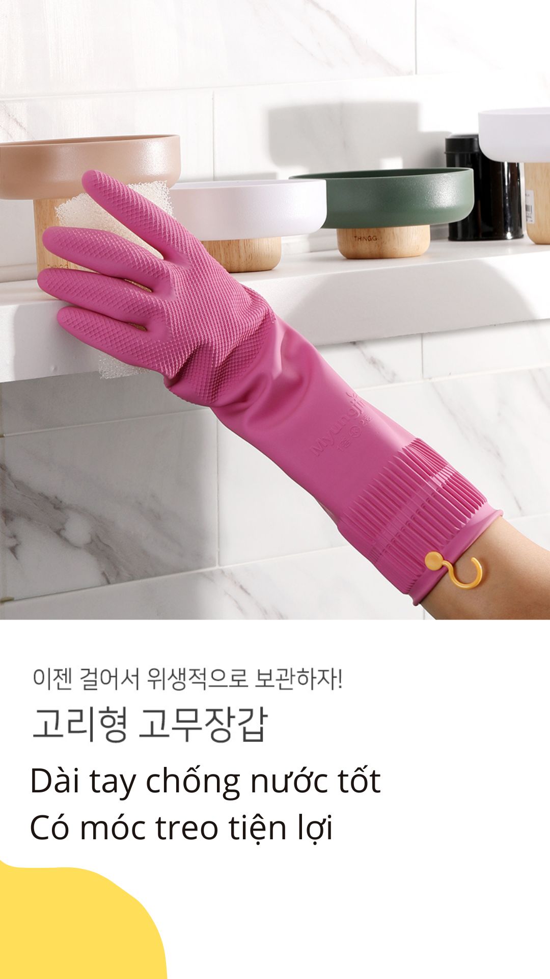 Găng tay cao su rửa chén nhà bếp xuất Hàn Quốc - Thương hiệu: Hàn Quốc - Xuất sứ thương hiệu: Hàn Quốc - Sản xuất tại: Việt Nam - Thông số